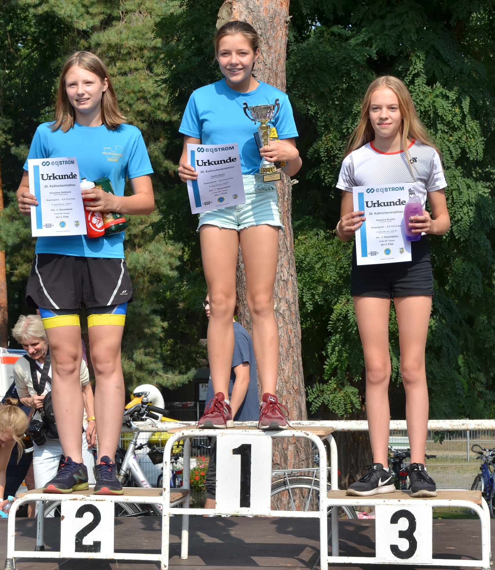 Podium Olympische Distanz 1,5-39-10 km ====================================================== 1. Jen Metcalf Leidig 24 TriTean 2:24:21 h 2. Theresa Klein Berliner TSC 2:25:56 h 3. Katrin Burow TuS Neukölln 2:26:16 h ------------------------------------------------------ 1. Norman Fenske TuS Neukölln 1:56:07 h 2. Andreas Hellstab Tri Team Berlin 2:01:27 h 3. Florian Seifert TVB09 2:02:32 h ======================================================