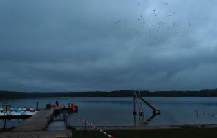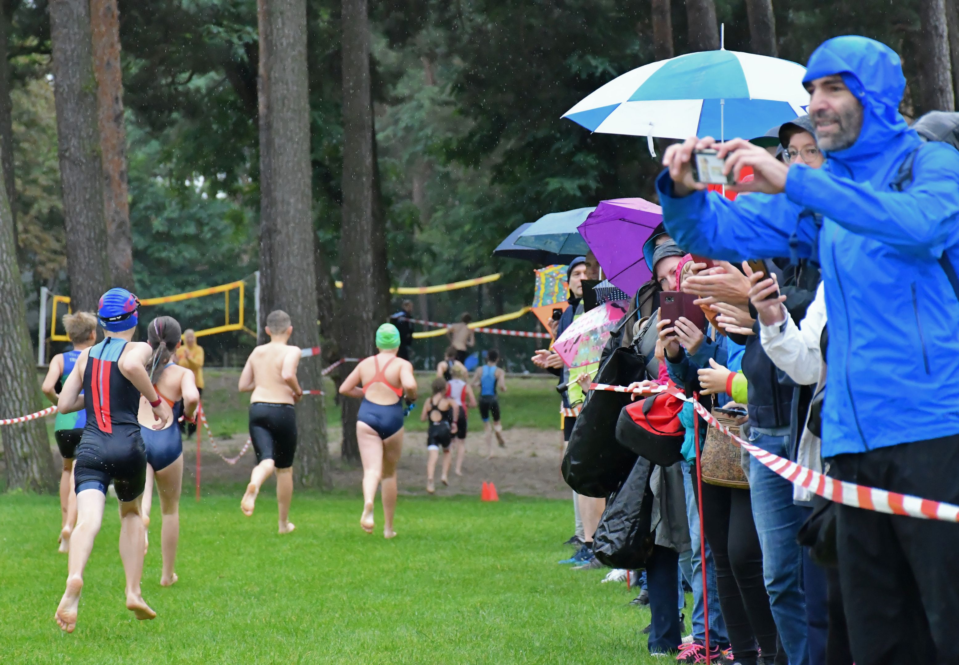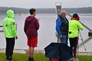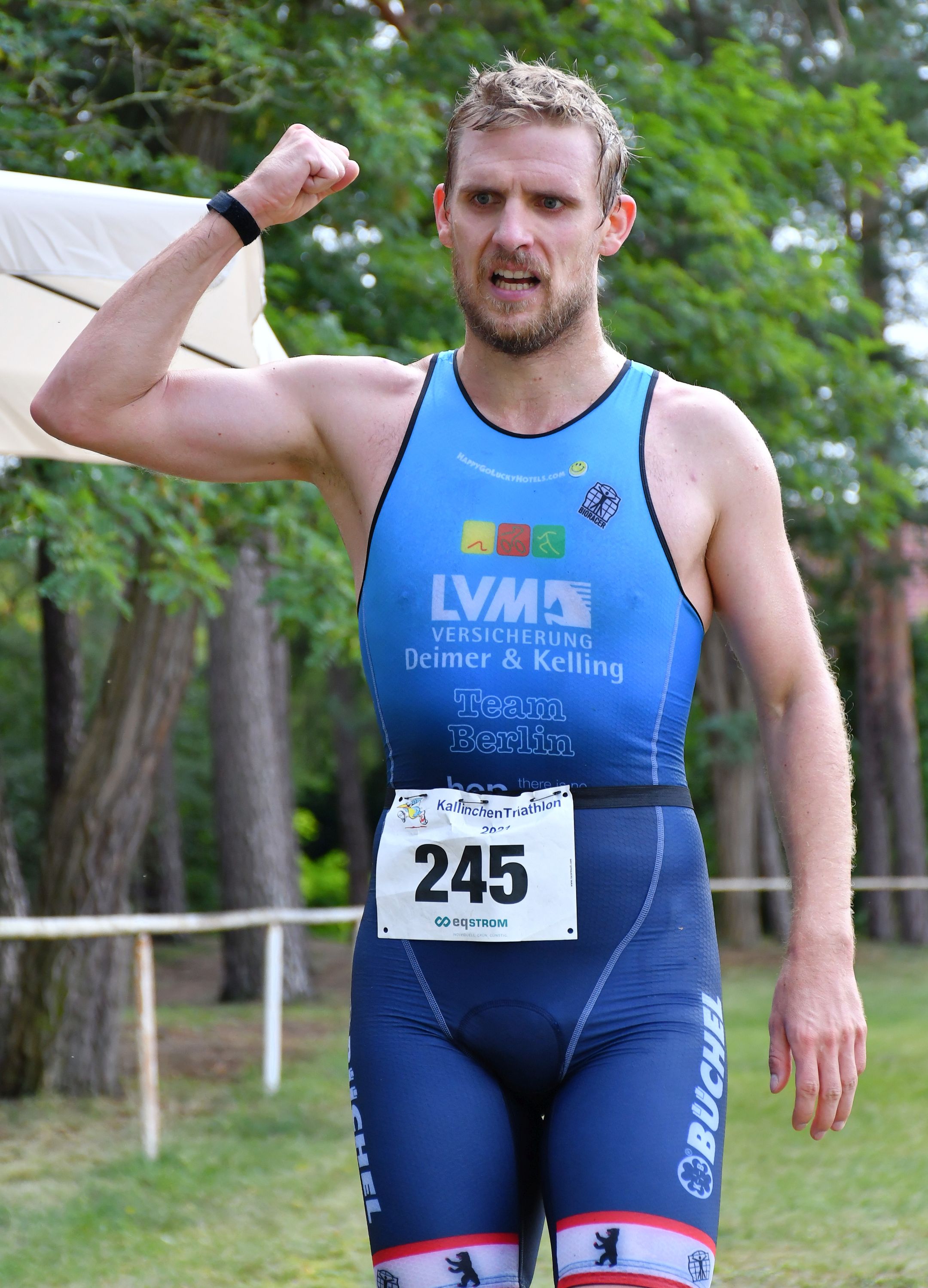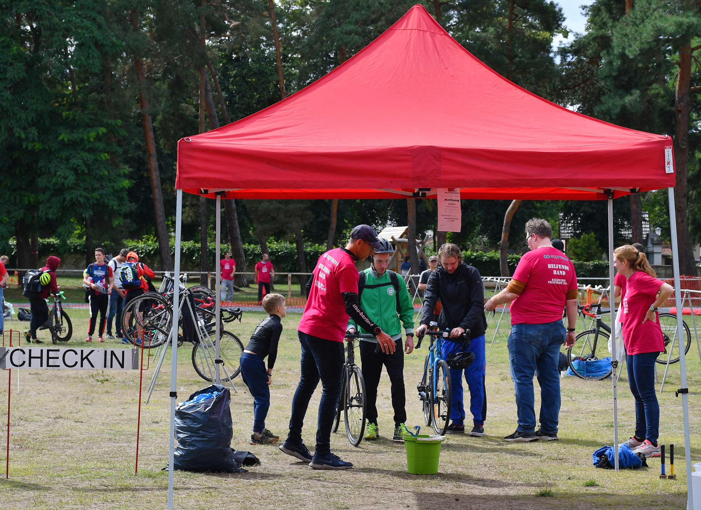 Nach einem Jahr Corona-Pause hat unser Kallinchen-Triathlon endlich wieder stattgefunden. Auch wenn das Wetter dieses Mal ziemlich nass war, haben sich insgesamt einige Hundert Triathlet/inn/en nicht davon abhalten lassen, in den mittlerweile etwas abgekühlten Motzensee zu rennen. Hatten wir beim Aufbau am Samstag noch trockenen Spätsommer, so begrüßte uns der Sonntagmorgen statt mit Morgenrot mit dicken Wolken, aus denen zunehmend stärkerer Regen fiel. Erst zur letzten Siegerehrung kam noch einmal die Sonne raus und stimmte uns versöhnlich zum Ausklang des Tages.