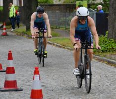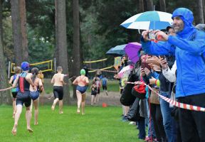 Um 9 Uhr gingen die ersten "Großen" ins Rennen, zunächst die Frauen und kurz darauf die Männer des Supersprints. Hier ging es das erste Mal um die großen gelben Bojen, auf dem Rad rund um den Motzensee und beim laufen über den Berg der Ringstraße.
