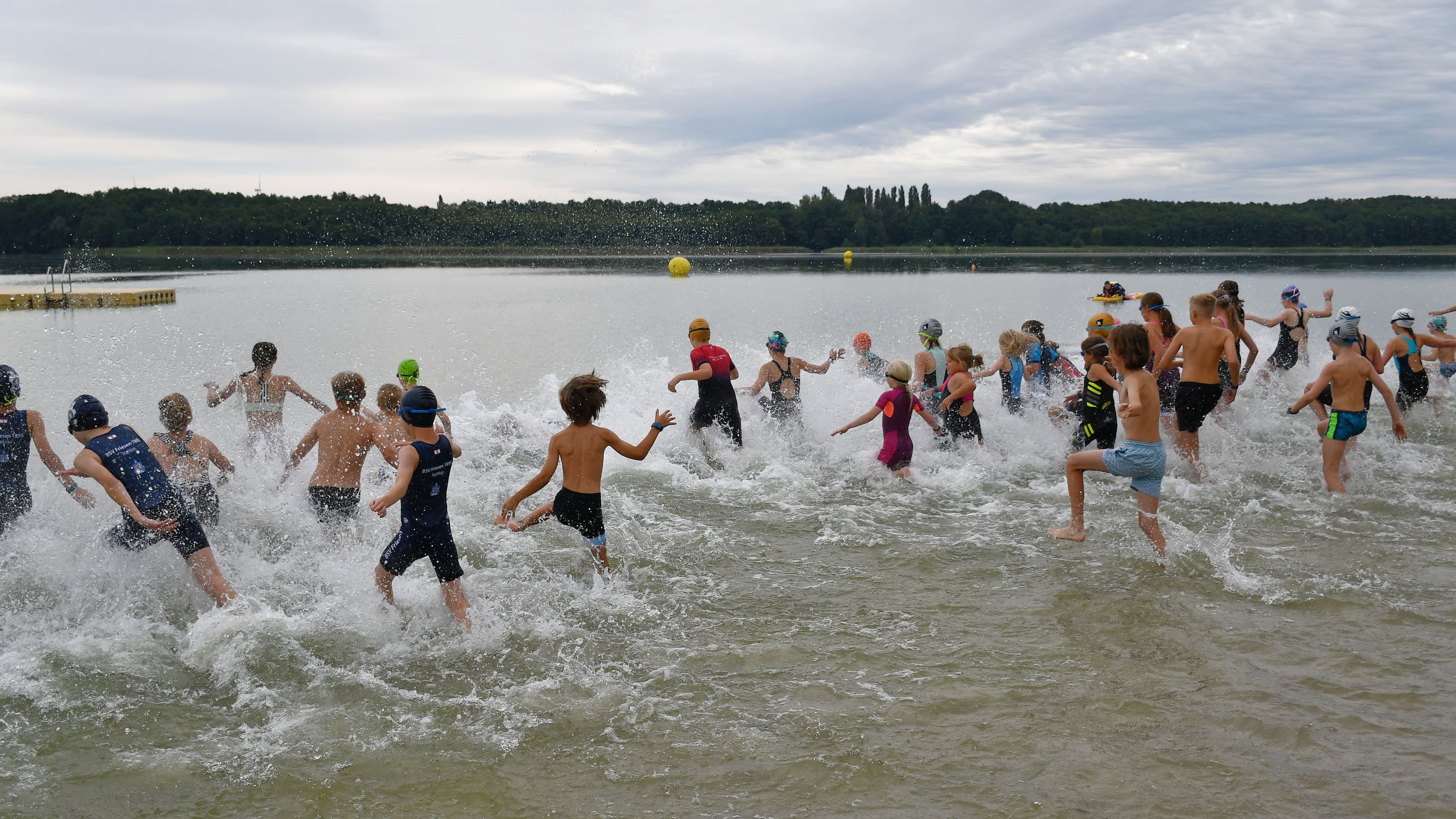 Am letzten Sonntag der Schulferien hat der Kallinchen-Triathlon bei optimalem Wettkampf-Wetter stattgefunden. Angenehme 20 Grad und meist bedeckter Himmel machten den Tag für gut 700 Teilnehmende und die anfeuernden Zuschauer erträglich nach den sehr warmen Sommerwochen der letzten Zeit. Der Teilnehmerzuspruch war damit wieder so gut wie vor den Corona-Jahren. Insbesondere der rege Zuspruch beim Kinder-Triathlon freut uns sehr.