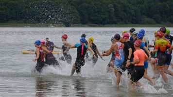 Der Sprint hat in Kallinchen durch vergleichsweise lange Rad- und Laufstrecken schon einen gewissen Anspruch. Es wird erstmals die große Runde auf dem See geschwommen.