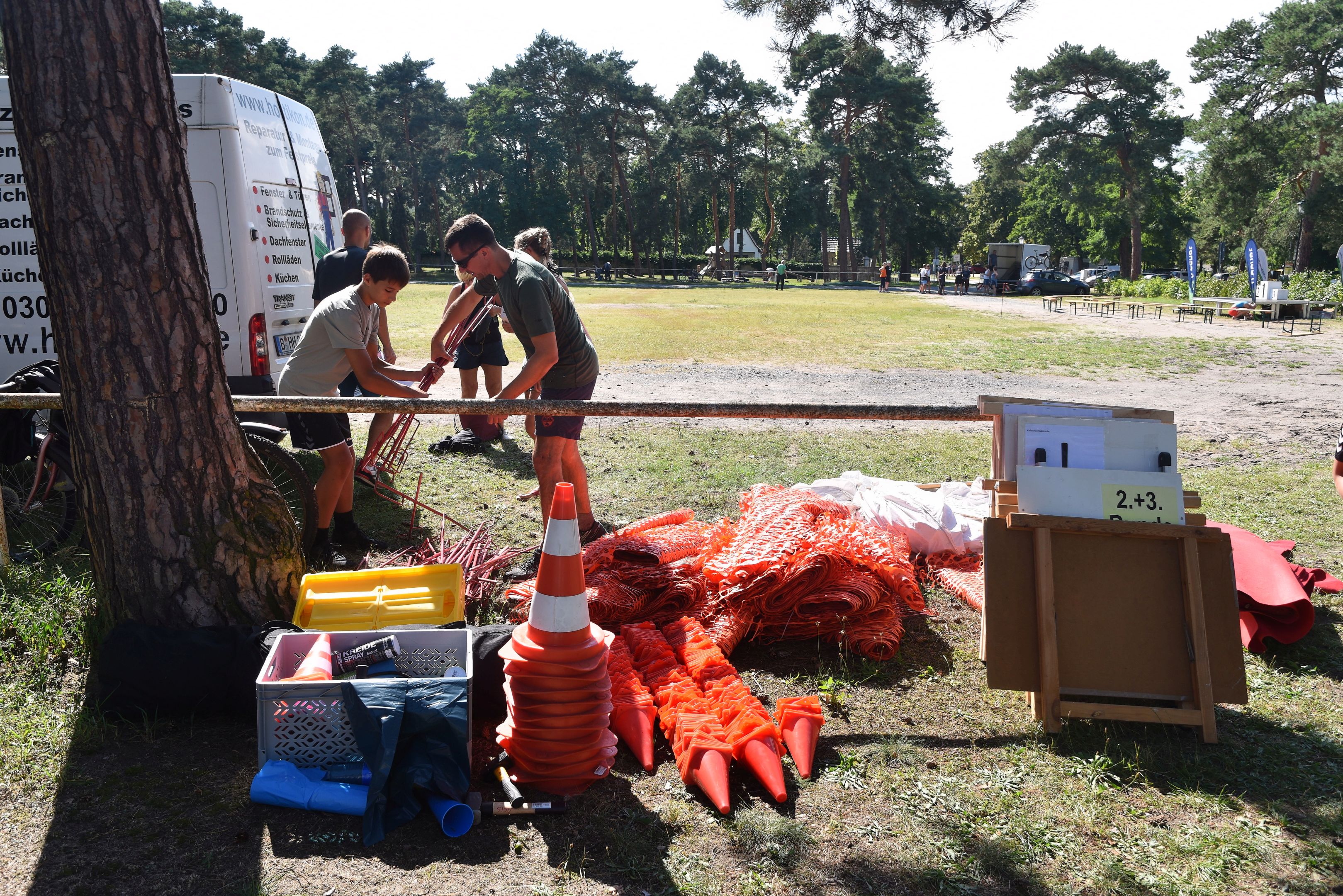 Schon am Freitag vor dem Wettkampf wurden erste Vorbereitungen im Wechselbereich getroffen. Am Samstag haben wir dann Wechselzone, Orga-Zelte, Bühne und weitere Anlagen aufgebaut.