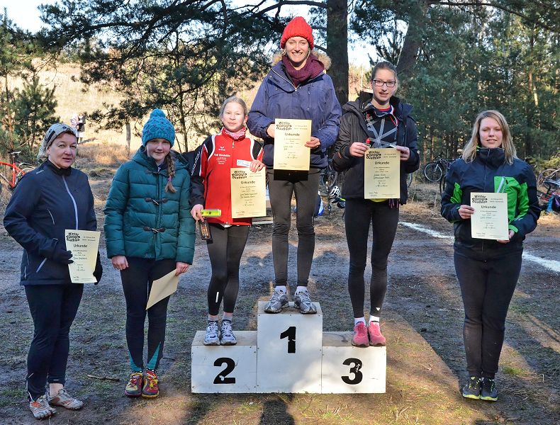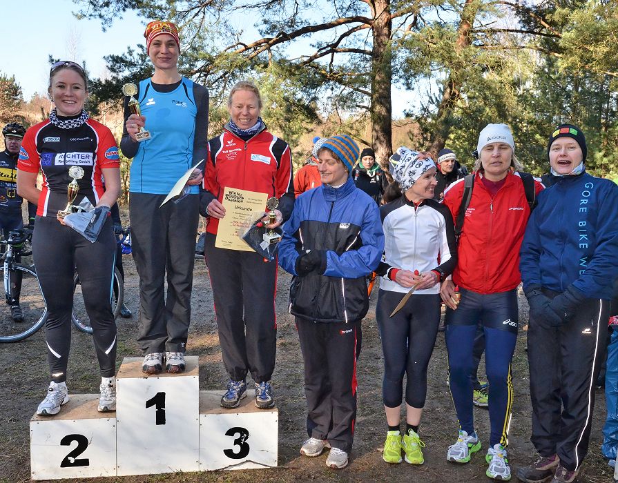 Das Frauenfeld war erfreulich gut besetzt, sowohl was die Klasse als auch die Anzahl der Starterinnen betrifft. Anja Leuendorff (A3K) kam nach dem ersten Lauf als erste wieder in die Wechselzone. Auf dem Rad machte dann Sam Sandten (OSC Potsdam) richtig Druck und fuhr mit der besten Radzeit in die Führung vor. Allerdings war dann eingangs des 2. Laufs der Ofen aus, so dass Anja den Wettkampf doch noch gewinnen konnte. Antje Ungewickell (TuS Neukölln) wurde mit kluger Renneinteilung zum Ende immer schneller und sicherte sich den dritten Podiumsplatz.