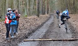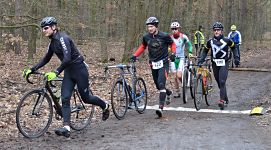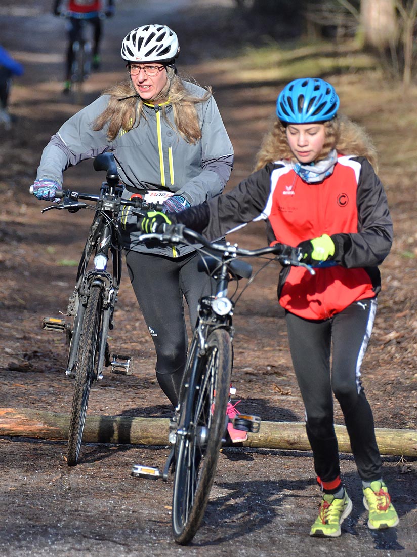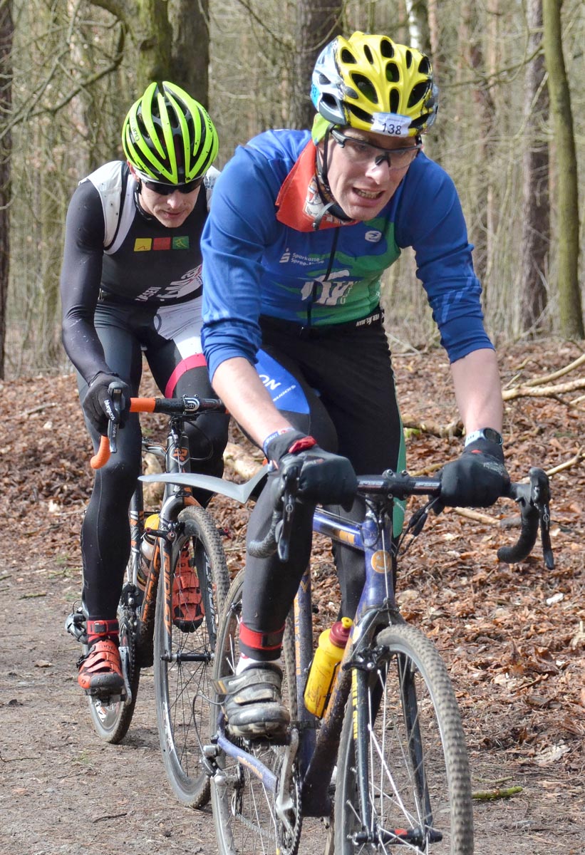 Nach endlosen Wochen mit vereisten Waldwegen und wenig Radtraining ging die neue Wettkampf-Saison für die meisten Triathleten recht plötzlich los. Schließlich begann das große Auftauen mit Dauerregen und Wind, aber am Samstagmorgen erwartete uns ein kalter, sonniger Vormittag mit erstaunlich guten Bodenverhältnissen, die allerdings durch einige Traktorspuren vergröbert wurden. Im Sturm umgestürzte Bäume hatten die Forstämter rechtzeitig aus dem Weg geräumt. Besonders auf der Shorty-Strecke war der Radkurs nicht einfach zu fahren, während die Classic-Runde abgesehen vom ersten Kilometer griffig und eben war. Insgesamt 95 Unerschrockene gingen ins Rennen, einige weniger als angemeldet waren.