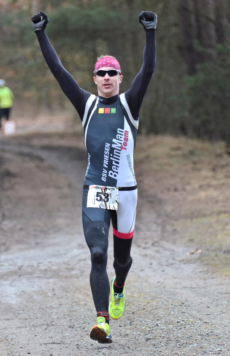 Bei den Herren ging Altmeister Christian Hoffmann (BSV Friesen) nach einer Zeit der Abstinenz vom Winterduathlon wieder ins Rennen und fuhr seinen insgesamt 5. Titel ein vor Philipp-Johannes Müller (Triathlon Potsdam) und Stephan Leuendorff (A3K Berlin).