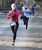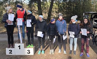Bei den Mädchen bildete sich schnell ein Grüppchen mit den Schnellsten des Vorjahrs, Lara Ungewickell (TuS Neukölln) und Martha Gastell (Weltraumjogger) und ein paar Jungs. Diese blieben bis zum letzten Lauf zusammen, so dass der Zielsprint entscheiden musste. Hier konnte sich Lara hauchdünn vor Martha durchsetzen. Aus der Gruppe mit den Verfolgerinnen hatte Helena Weinreich (SCC TriKids) am Ende die schnellsten Beine und sicherte sich den Bronzeplatz.