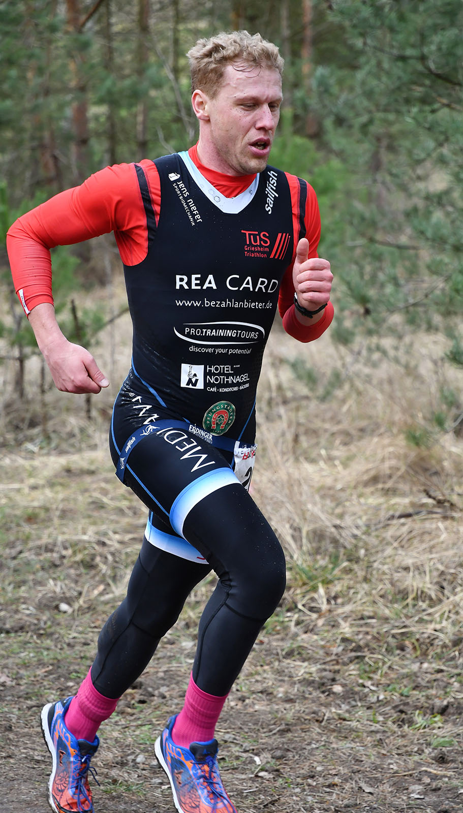 Bei den Männern hat es Enrico Heinowsky nach einigen Anläufen ganz nach oben aufs Podium geschafft. Da er kurzfristig dem ausrichtenden Verein beigetreten war, blieb nach vielen Jahren der Sisu-Winterwettkampf einmal wieder im Hause. Auch Enrico ist ein laufender Radfahrer, er hat nach gutem Lauf eine der besten Radzeiten der Geschichte hingelegt, so dass er die letzten drei Laufkilometer ungefährdet angehen konnte. Martin Dröll (Rea Card TuS Griesheim) kam nach ausgeglichener Leistung auf den zweiten Platz, dahinter Hendrik Grosser (TuS Neukölln) auf Bronze.