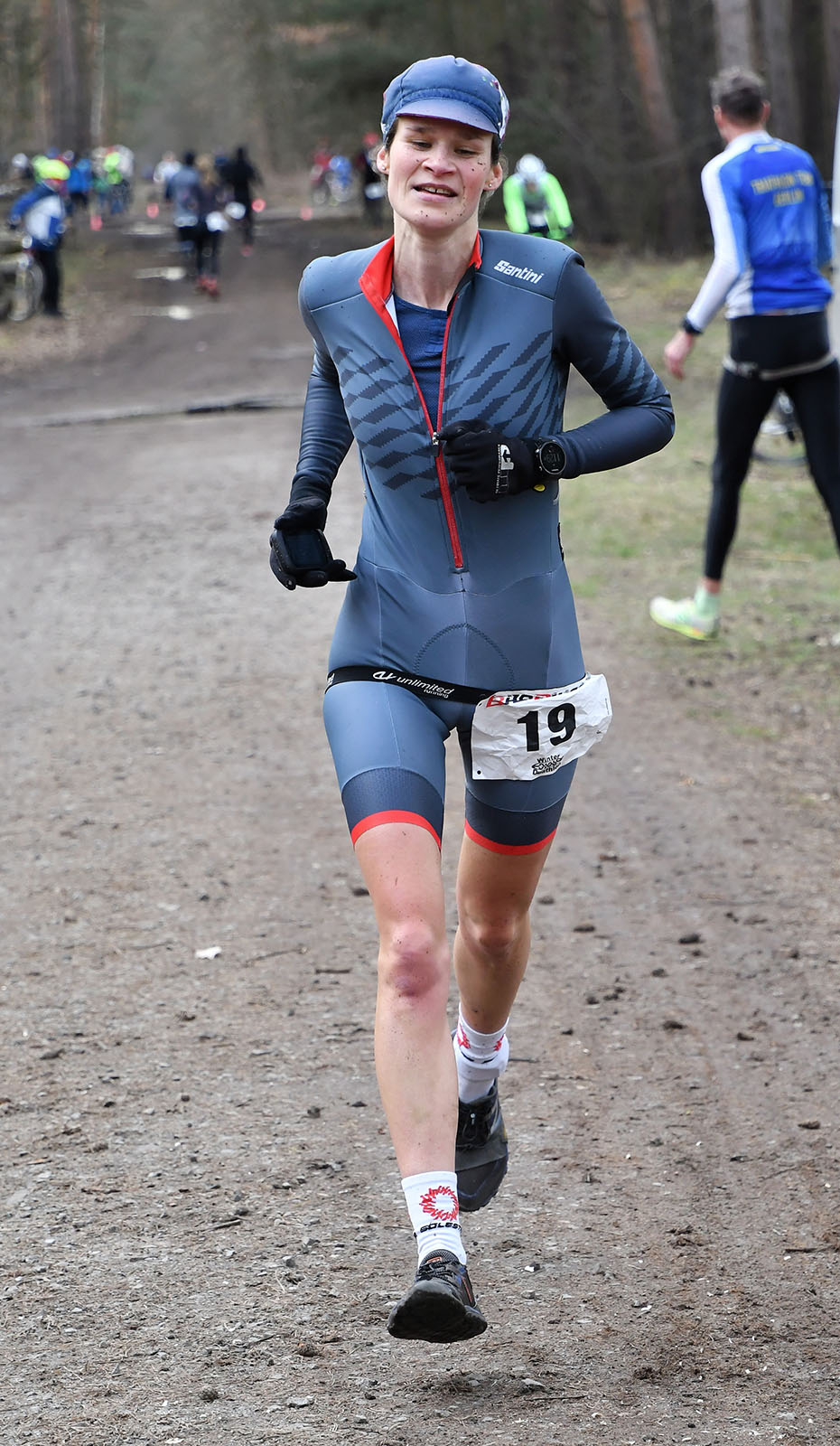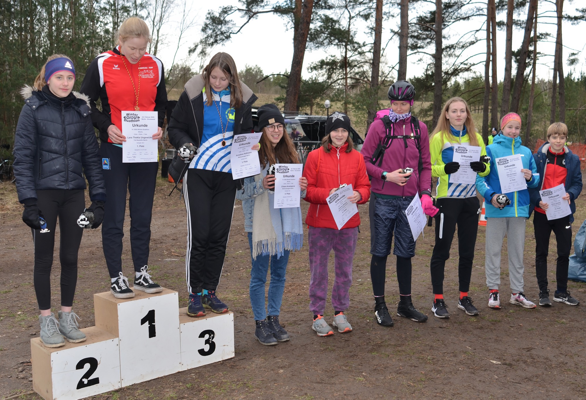 Für den Classic-Wettkampf ist ebenfalls zu erwähnen, dass wir ein starkes Frauenfeld am Start hatten, eine bunte Mischung von Triathletinnen und Radcrosserinnen, wie wir es bei Cross-Duathlons traditionell gewohnt sind. Veronica Cacean (BRC Endspurt) errang den Sieg wiederum zugunsten der laufenden Crosserinnen, diesmal übrigens mit der zweitbesten Zielzeit in der Geschichte des Winter-Duathlons, eine starke Verbesserung. Triathletin Marie Reichert (SCC) fuhr auf dem geliehenen Crosser unbeirrt auf den Silberplatz vor Alexandra Latocha von der SG Brieselang.