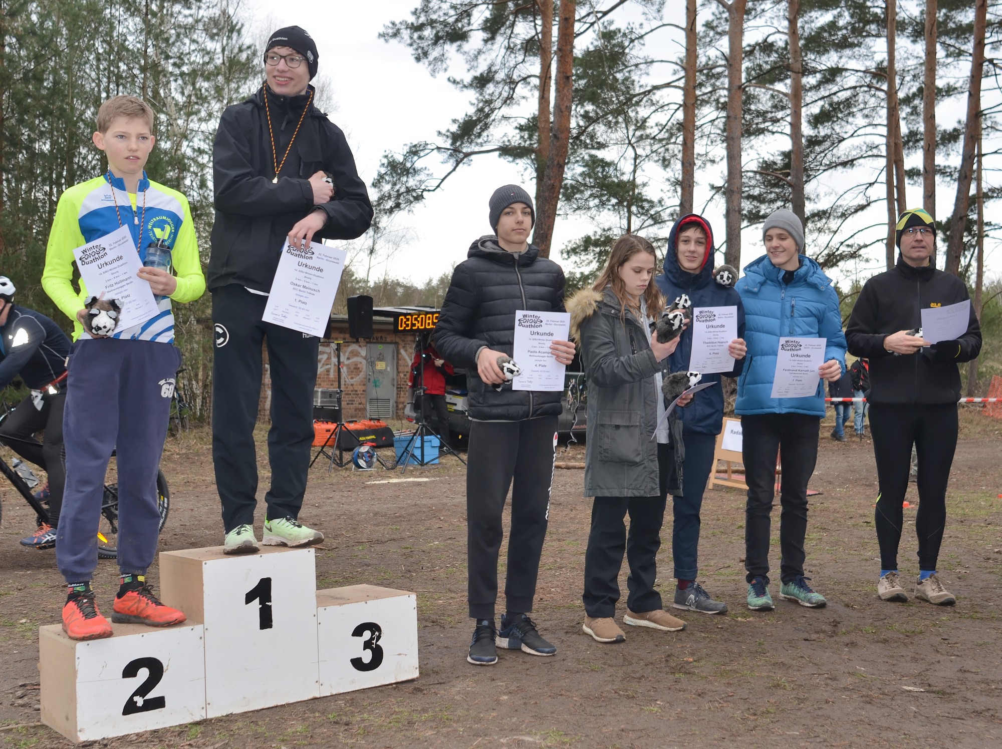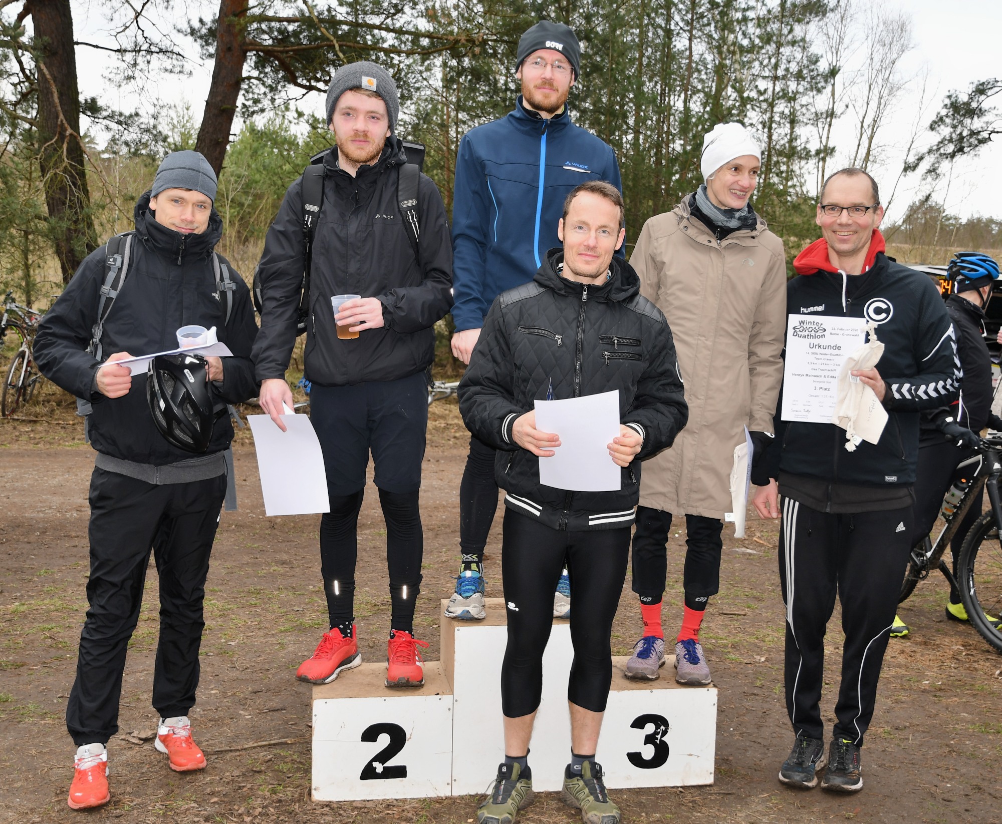 Drei Teams hatten wir auf der Strecke, so dass es auch hier seit langem mal wieder ein volles Podium gab. Die Uhthoff-Twins und die Plüquett-Brüder liefen gleich schnell, aber erstere hatten einfach den besseren Radfahrer an Bord. Die Mainusch-Eltern kamen auf den dritten Platz, auch dies gutes Teamwork. Apropos Teamwork: In genau einer Wocher findet die Mountain-Challenge im Tegeler Forst statt, das Format ist dem Winter-Du sehr ähnlich, und Anmeldungen werden noch entgegengenommen!