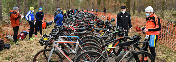 Insgesamt 35 Sisus haben dafür gesorgt, dass der Wettkampftag in gewohnter Weise ablaufen konnte. Um 7 Uhr morgens trafen wir uns im dämmerigen Wald für den Aufbau. Die Weltraumjogger haben wieder ihre Radständer zu Verfügung gestellt. Die Malteser hatten ihre Rettungssanitäter vor Ort (die diesmal komplett arbeitslos blieben). Der Förster der Revierförsterei Saubucht hat uns erstmals die Streckengenehmigung ausgestellt und im Rahmen der Sturmschädenbeseitigung auch unsere Strecken wieder befahrbar gemacht.